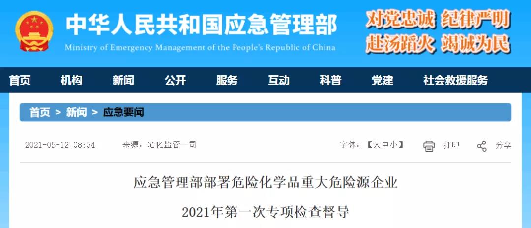 5月11日,應急管理部召開危險化學品重大危險源企業2021年第一次專項檢查督導動員部署會,應急管理部黨委委員、副部長劉偉主持會議并講話。 會議指出,當前全國危化品安全生產形勢總體穩定,但穩中有險、穩中有憂,形勢嚴峻復雜,且每年的5月至7月都是化工事故高發期和重特大事故的易發期。開展重大危險源企業專項檢查督導和大型油氣儲存基地安全風險評估兩項工作既是落實黨中央關于防范化解重大風險部署要求的有力舉措,也是為建黨100周年營造安全穩定社會環境的實際行動。 會議要求,各地要精心組織開展重大危險源企業專項檢查督導工作,聚焦工作目標、交叉檢查、督導執法和宣傳曝光,進一步鞏固“消地協作”機制,有效管控危險化學品重大安全風險。要扎實推進大型油氣儲存基地安全評估,嚴格落實責任、把握標準、評估程序與督辦整改,通過安全評估建立大型油氣儲存設施風險管控長效機制。要融合推動各項危險化學品安全防控措施落地落實,強化組織協調,形成工作合力,確保如期高質量完成。 會議強調,各地要堅決扛起防范重大安全風險的政治責任,牢固樹立“一盤棋”思想,強化底線思維,狠抓各項措施落實。要加強工作全過程的動態跟蹤,既要對突出問題深度報道,又要挖掘宣傳正面典型,切實發揮正面引領和反面警示作用,凝聚社會廣泛共識,推動工作深入落實。 會上,應急管理部消防救援局、危險化學品監督管理一司、危險化學品監督管理二司、新聞宣傳司對相關工作提出具體要求。有關中央企業,部相關司局、事業單位和行業協會負責人在主會場參會,各省、市級應急部門,消防救援總隊、支隊負責人在各地分會場參會。