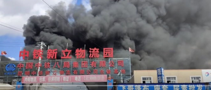 2021年11月2日10點30分,云南省昆明市一物流園倉庫起火,現場濃煙沖天,消防出動26輛車前往救援,被燒毀的貨物主要為玩具和辦公用品,暫無人員傷亡。