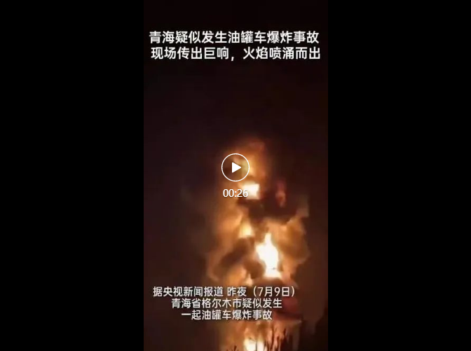 7月9日,青海省格爾木市疑似發生一起油罐車爆炸事故。據了解,爆炸造成2人受傷,傷者生命體征平穩,目前無人員死亡。