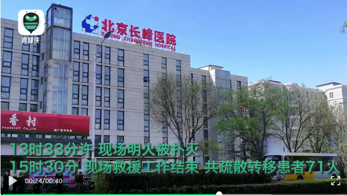 2023年4月18日12時57分,北京市豐臺區一醫院住院部東樓發生火情。13時33分許,現場明火被撲滅。15時30分,現場救援工作結束,共疏散轉移患者71人,21人不幸死亡。 據悉,起火樓棟的五樓以上,主要住的是老年病、臨終關懷一類的病人,多數腿腳不便。這也讓火災發生時,這些患者的逃生難度加大。 現場目擊者稱,13時半左右,住院部已經著火。“醫院門口圍了很多人,煙特別大,空調上全都坐著人,好多人喊救命。” “三層以下沒有煙霧,也沒有人,都是從上面冒煙。”有人順著打結的床單和窗簾慢慢下滑。 △圖源:央廣網 醫院一位工作人員透露,起火樓棟最近在裝修,但不清楚具體裝修幾樓。 據悉,就在1個多月前的2月27日,該醫院官網上發布一篇題文章,顯示該院根據政府監管部門通知要求,“第一時間召開了火災防控工作動員部署會,在分析研判當前消防安全形勢的同時,就火災防控工作進行了扎實安排部署”。 目前,事故原因正在進一步調查。 △圖源:央廣網 誰曾想到救命醫院變成了奪命醫院,21個鮮活的生命就這樣消失了,致使21個家庭陷入無限的悲傷之中! 教訓慘烈,代價重大,希望有關調查部門能盡快查出火災原因,給逝者和家屬一個交待!引以為戒,別讓悲劇再次發生!