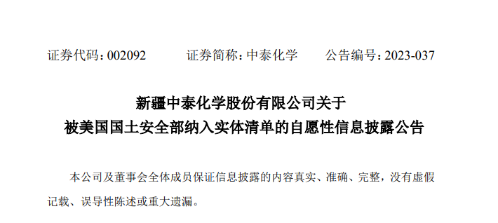 近日,美國國土安全部宣布禁止從中國打印機制造商納思達和新疆中泰化學進口產品,而理由則是這些企業涉及所謂“強迫勞動”。 據美國國土安全部當地時間9日在其網站上發布的消息,上述兩家中企被新列入所謂“維吾爾強迫勞動預防法”的實體名單中,這些企業及其子公司生產的商品將被限制進入美國。2022年6月21日,美國實施所謂“維吾爾強迫勞動預防法”,現在有22家企業被列入禁止進口的名單中,而中方此前多次否認美方關于所謂“強制勞動”的指控。 6月12日晚間,中泰化學發布關于被美國國土安全部納入實體清單的自愿性信息披露公告。 公告表示,2023年6月10日,新疆中泰化學股份有限公司獲知美國國土安全部將公司列入“維吾爾強迫勞動預防法”的實體名單中,公司2022年實現營業收入559.11億元,其中國內收入占比93.37%,出口收入占比6.63%,此次被列入實體名單不會對公司的生產經營造成重大影響。目前,公司正在全面評估此事件對公司造成的潛在影響,并將積極與相關部門溝通,做好應對工作。 中泰化學簡介 新疆中泰化學股份有限公司是新疆維吾爾自治區重點支持的優勢資源轉換企業,于2001年12月18日成立,2006年12月8日在深圳證券交易所上市,企業前身是1958年建廠的新疆燒堿廠。 中泰化學依托新疆地區豐富的煤炭、原鹽、石灰石等自然資源,通過不斷優化管理理念和完善產業生態圈,發展成為擁有氯堿化工和粘膠紡織產業兩大主業的優勢企業,主營聚氯乙烯樹脂(PVC)、離子膜燒堿、粘膠纖維、粘膠紗四大產品,配套熱電、蘭炭、電石、電石渣制水泥、棉漿粕等循環經濟產業鏈,主營產品的生產能力為年產205萬噸聚氯乙烯樹脂、146萬噸離子膜燒堿、88萬噸粘膠纖維、320萬錠粘膠紗。 作為氯堿行業龍頭企業,中泰化學延伸粘膠、紡織產業,上下游相互配套,構建一體化生產體系,提高公司整體競爭力。 根據中泰化學2022年年報顯示,其粘膠纖維主要出口巴西、印度、土耳其等國家,粘膠紗主要出口新加坡、印度、馬來西亞、土耳其、巴西等國家。 美國打著人權幌子 另據商務部6月12日網站消息,商務部新聞發言人就美國將2家中國企業列入所謂“維吾爾強迫勞動預防法實體清單”答記者問時表示,美方借“人權”之名,行單邊霸凌之實,是典型的經濟脅迫行為。中方對此堅決反對。 發言人還強調,新疆根本不存在所謂“強迫勞動”、“迫害少數民族”。美方應立即停止政治操弄和抹黑攻擊,停止無理打壓中國企業,停止破壞新疆繁榮穩定。中方將采取必要措施,堅決維護中國企業合法權益,維護國家主權安全和發展利益。 2022年6月24日,新疆維吾爾自治區人民政府新聞發言人徐貴相在第76場新疆維吾爾自治區專題新聞發布會上表示,美國海關和邊境保護局依據所謂的“維吾爾強迫勞動預防法”,將中國新疆地區生產的全部產品均推定為所謂“強迫勞動”產品,并禁止進口與新疆相關的任何產品,這是美方打著人權幌子對華進行遏制打壓的升級,“美方有關行徑嚴重損害中美兩國企業和消費者切身利益,嚴重破壞國際經貿規則和國際產業鏈供應鏈穩定,嚴重違反國際法和國際關系基本準則,充分暴露出美國打著人權旗號破壞人權、打著規則的旗號破壞規則的霸權實質。我們對此予以強烈譴責和堅決反對!所謂新疆存在‘強迫勞動’完全是美西方反華勢力編制的彌天大謊,是徹頭徹尾的世紀謊言。中國新疆根本就不存在所謂的‘強迫勞動’問題”。 PVC反傾銷 美國是全球PVC第一大出口國家。值得注意的是,2020年8月18日,中國商務部收到新疆中泰化學股份有限公司、新疆天業(集團)有限公司、陜西北元化工集團股份有限公司、天津大沽化工股份有限公司和宜賓天原集團股份有限公司代表國內聚氯乙烯產業正式提交的反傾銷調查申請,申請人請求對原產于美國的進口聚氯乙烯進行反傾銷調查。 根據審查結果,商務部決定自2020年9月25日起對原產于美國的進口聚氯乙烯進行反傾銷立案調查。 經過一年的反傾銷調查,2021年9月23日,調查機關認定,原產于美國的進口聚氯乙烯存在傾銷,中國聚氯乙烯產業未受到實質損害或實質損害威脅。根據《中華人民共和國反傾銷條例》第二十七條的規定,調查機關決定自本公告發布之日起,終止對原產于美國的進口聚氯乙烯的反傾銷調查。 注意啦!這些化學品禁止進出口! 近日,商務部、海關總署、生態環境部聯合公布了《禁止進口貨物目錄(第八批)》和《禁止出口貨物目錄(第七批)》。 禁止出口貨物目錄(第七批)包括:六氯丁二烯、五氯苯酚及其鹽類和酯類、三氯殺螨醇、全氟己基磺酸及其鹽類和其相關化合物、多氯萘(包括二氯萘、三氯萘、四氯萘、五氯萘、六氯萘、七氯萘、八氯萘)、六溴環十二烷。 禁止進口貨物目錄(第八批)包括:含西布曲明的混合藥品(未配定劑量或制成零售包裝的)、已配劑量含西布曲明的制劑、西布曲明及其鹽、六氯丁二烯、五氯苯酚及其鹽類和酯類、三氯殺螨醇、全氟己基磺酸及其鹽類和其相關化合物、多氯萘(包括二氯萘、三氯萘、四氯萘、五氯萘、六氯萘、七氯萘、八氯萘)、六溴環十二烷。 注: 1.禁止進口的商品范圍以商品描述為準,海關商品編號供通關申報參考。 2.CAS號,即化學文摘社(Chemical Abstracts Service,縮寫為CAS)登記號。 3.全氟己基磺酸及其鹽類和其相關化合物是指:(1)全氟己基磺