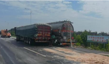 7月6日凌晨1:40,江蘇揚州市119指揮中心接到報警稱:高郵市湯莊鎮安大公路與S333交界處發生交通事故有危化品泄漏,接警后揚州市119指揮中心立即調派轄區消防救援力量趕赴現場處置。 消防救援人員抵達現場后發現,現場為一輛半掛車追尾一輛裝載33噸危化品的槽罐車,導致槽罐車罐體尾部發生滴漏,地面有大量液體,現場無人員被困,根據現場情況,消防員立即在道路兩側拉起警戒線疏導來往車輛不要靠近,同時聯系吊車對事故車輛進行吊升,槽罐車廠家對槽罐車進行倒罐,并使用水槍對槽罐車泄漏危化品進行稀釋防止意外發生。 經過一段時間的現場救援,槽罐車廠家調派的倒罐車與吊車等抵達現場,經過技術人員檢查后,工作人員開始進行倒罐。為防止倒罐過程中發生意外,消防員利用沙土對地面進行覆蓋。一段時間后,工作人員倒罐完畢后交由有關部門進行處理。 目前,事故原因正在進一步調查中。