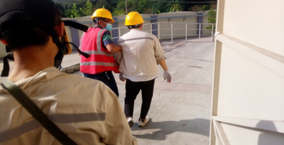 倉管員(yuan)發(fa)現險情及(ji)現場處置人(ren)員(yuan)中毒,將中毒人(ren)員(yuan)扶至安全區域。