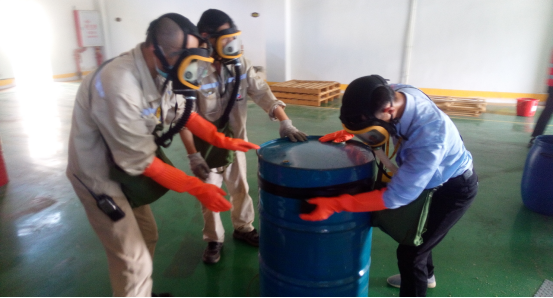 2、在(zai)應急(ji)演練(lian)(lian)處置(zhi)過程(cheng)中,倉儲(chu)部作為應急(ji)救(jiu)援的主力軍,處置(zhi)動作迅速、到位(wei),對防毒面具的穿(chuan)戴掌握(wo)熟(shu)練(lian)(lian)。