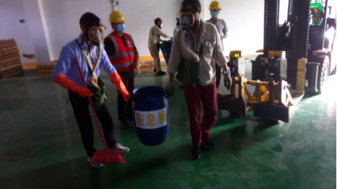 乙4倉(cang)庫發生(sheng)毒(du)害品泄(xie)露(lu)后現場(chang)人員(yuan)進(jin)行(xing)初期處置。