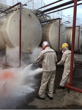 現場崗位人員使用(yong)滅(mie)火器進(jin)行初期滅(mie)火。