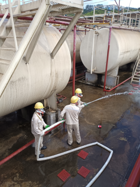 本次(ci)演練有薌城區應(ying)急局管理局5位領導全程(cheng)觀摩(mo)指(zhi)導,公(gong)司所有在崗人(ren)(ren)(ren)員參(can)與(yu),參(can)與(yu)人(ren)(ren)(ren)員共39個人(ren)(ren)(ren)。應(ying)急救(jiu)援隊伍分(fen)成滅火組(zu)(zu)(zu)、堵漏組(zu)(zu)(zu)、工藝組(zu)(zu)(zu)、事故(gu)洗消組(zu)(zu)(zu)、事故(gu)監測組(zu)(zu)(zu)、消控(kong)組(zu)(zu)(zu)、搜救(jiu)組(zu)(zu)(zu)、醫(yi)療救(jiu)護及(ji)后勤(qin)保障組(zu)(zu)(zu)、安(an)全警戒及(ji)疏散組(zu)(zu)(zu)等9個應(ying)急救(jiu)援組(zu)(zu)(zu)。整個演練歷時(shi)22分(fen)鐘。演練過(guo)程(cheng)圖片見附圖。