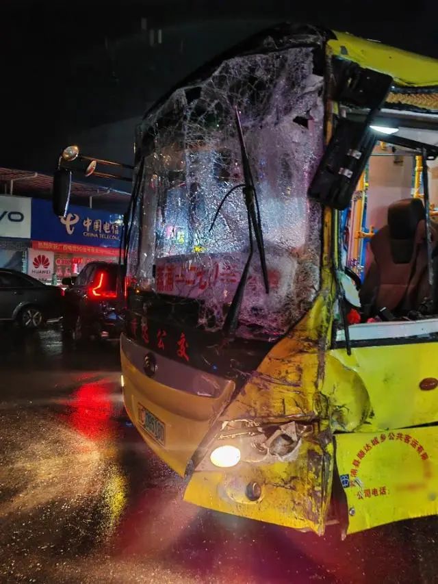 10月14日晚,多名網民發視頻稱,廣西荔浦一輛公交車與多車相撞,有人受傷。目擊者稱,事發時公交車正在下客,有人員受傷。對此,當地相關部門回應稱,此次事故有人員受傷,未造成死亡,具體原因正在調查中。 事發現場視頻畫面顯示,夜幕下,正下著雨,一輛車頭受損的公交車斜停在路中間,旁邊是一輛車尾已出現變形的油罐車,中間還有兩輛不同程度碰撞受損的私家車,現場散落著不少玻璃和零件碎片,引起了群眾圍觀,隨后有救護車到場。 10月15日,目擊者何先生向大皖新聞記者介紹, 14日晚上7點左右,在荔浦市馬嶺鎮一處道路,這輛公交車到站后,正在下客,突然一輛油罐車駛來,車尾與公交車頭發生碰撞,導致公交車出現旋轉位移,在此過程中,與兩輛私家車碰撞。事發時,公交車內還有乘客。 公交車車頭受損變形何先生稱,現場有人員受傷,事發后,一名中年男子從油罐車上下來撥打了報警電話,隨后有救護車到場。事發前,他兒子剛從公交車上下來,他愛人騎電瓶車去接孩子時,也受到波及,母子二人出現輕微擦傷。 目擊者稱,事發時公交車正在下客針對此事,馬嶺鎮政府工作人員告訴大皖新聞記者,事發后,該鎮相關部門也已到場處置,此次事故有一些人員受輕傷,但未聽說有人死亡。荔浦市中醫醫院工作人員也向記者證實,此次事故有人員受傷,無人死亡。 大皖新聞記者注意到,事發公交車車頭印有“順達公交”字樣,記者就此聯系了當地順達城鄉公共客運有限公司,工作人員稱,交警部門已介入處理處事。對此,荔浦市交警大隊工作人員回應稱,此事正在處理,事故原因還在調查中。”