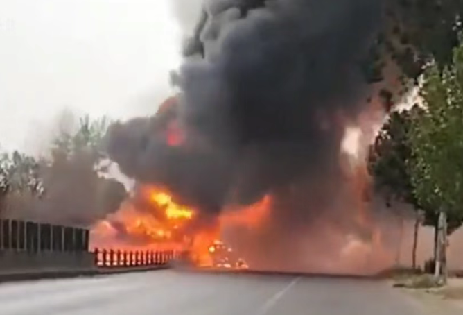 8日上午,記者從社交媒(mei)體(ti)平臺上看到,道路上黑煙滾滾,火光沖(chong)天,火勢(shi)出現蔓延,現場情形十(shi)分危急,附近還有(you)路人遠遠圍觀不敢(gan)靠(kao)近。