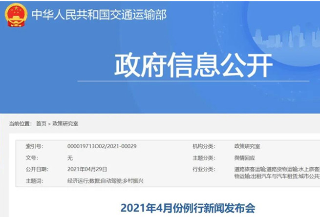 4月29日,交通運輸部召開4月例行發布會,針對近期道路貨運行業事件,交通運輸部高度重視,研究部署規范道路貨運領域行政執法,保障貨車司機的合法權益。交通運輸部將有序規范貨運新業態經營行為,加強道路貨運平臺行業監管,...