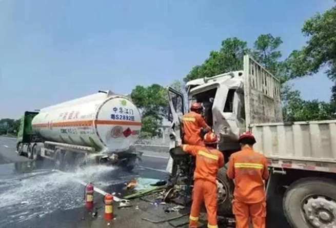 4月6日11時08分,惠州甬莞高速發生一起交通事故,1輛槽罐車、1輛貨車和1輛小車,三車追尾,一名貨車司機被困。現場槽罐車尾部損壞并發生泄漏,槽罐車儲存危化品為異丙醇,儲量32.5噸。值得慶幸的是很快就成功救出被困的貨車司機,經過6小時奮戰,槽罐車泄漏被成功封堵。事故中泄漏的異丙...